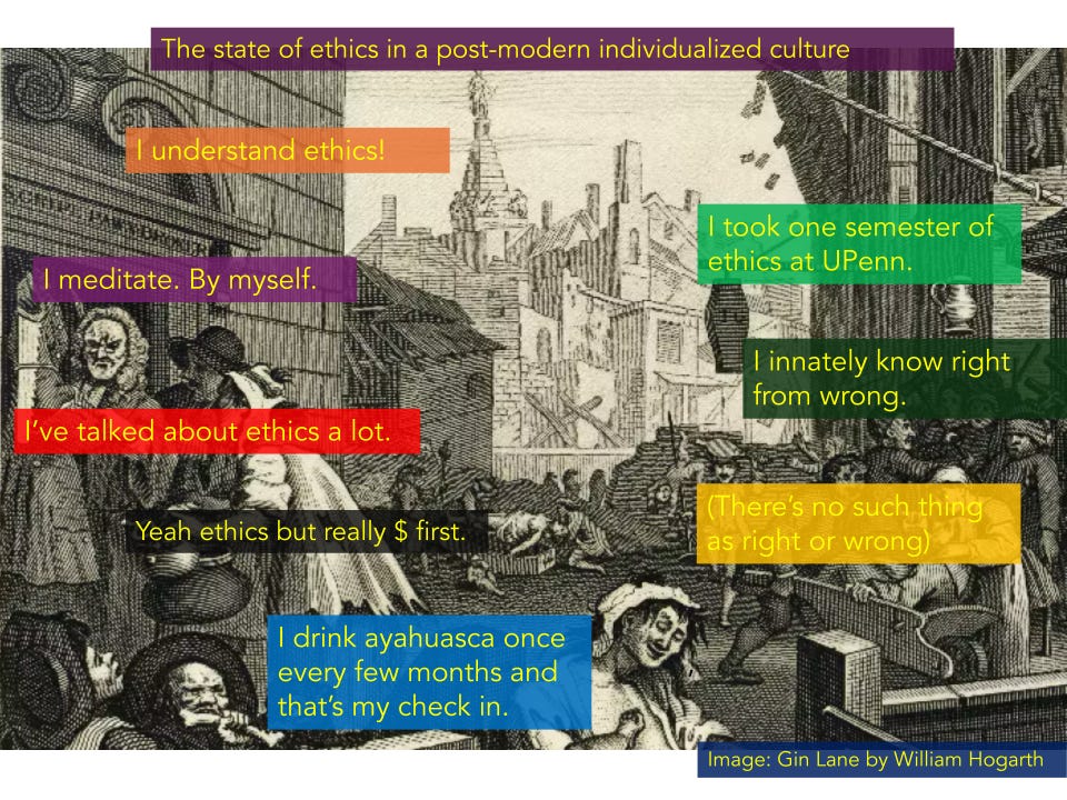 Cultures that have sustained for thousands of years simply don't give uninitiated chiefs, shamans, or warriors access to community-disrupting powers. Not without going through rigorous developmental processes in order to know how to be in right relationship in their bones. Ethics is not an abstract intellectual exercise; itās a deeply embodied one.