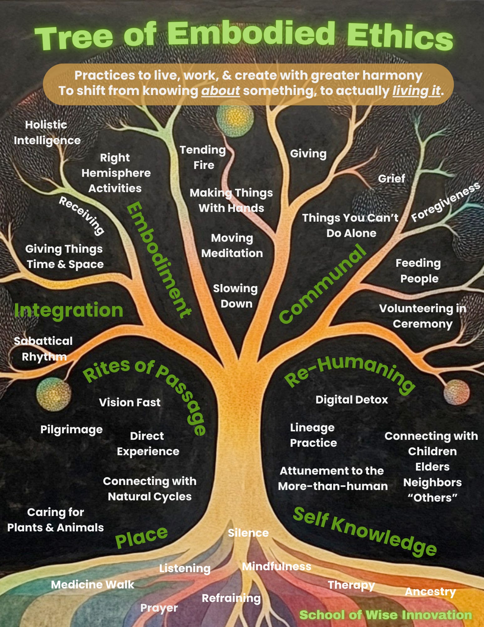 May the Tree of Embodied Ethics inspire and support you in cultivating greater sensitivity, reverence, and harmony with yourself, your relationships, and the web of life.